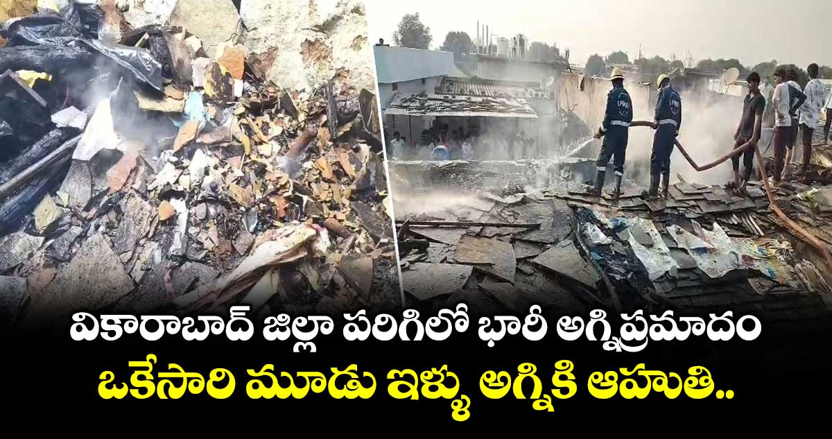 వికారాబాద్ జిల్లా పరిగిలో భారీ అగ్ని ప్రమాదం జరిగింది. పరిగి మున్సిపల్ పరిధిలోని మల్లెమోనిగూడలో జరిగిన భారీ అగ్నిప్రమాదంలో ఒకేసారి మూడు ఇళ్ళు అగ్నికి ఆహుతయ్యాయి. బుధవారం ( జనవరి 21 ) జరిగిన ఈ ఘటనకు సంబంధించి వివరాలిలా ఉన్నాయి.. పరిగి మున్సిపల్ పరిధిలోని మల్లెమోనిగూడలో భారీ అగ్నిప్రమాదం చోటుచేసుకుంది. రసూల్ బి, బషీర్ బి, మౌలానా అనే వ్యక్తుల ఇళ్లు ఒకేసారి అగ్నికి ఆహుతయ్యాయి. బాధితులు పొలం పనులకు వెళ్లిన సమయంలో మంటలు చెలరేగడంతో ఇళ్లలోని సామాగ్రి మొత్తం కాలి బూడిదైంది.