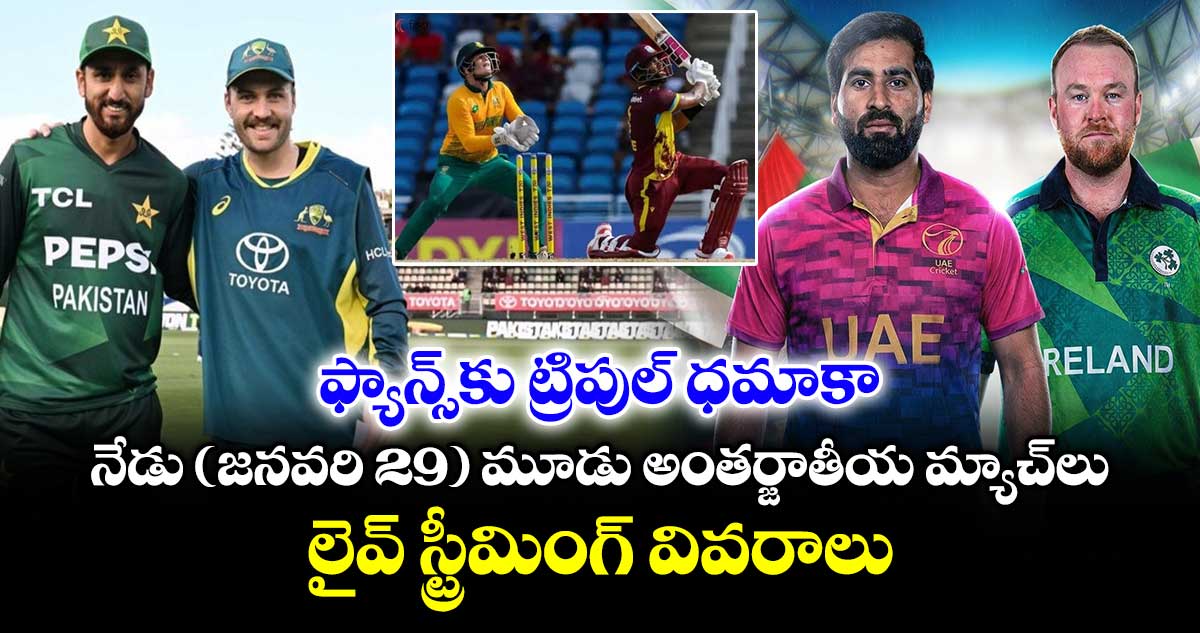 ఇండియా, శ్రీలంక వేదికలుగా ఫిబ్రవరి 7 నుంచి టీ20 వరల్డ్ కప్ జరగనుంది. ఈ మెగా టోర్నీకి ముందు క్రికెట్ ఫ్యాన్స్ ను అలరించడానికి దాదాపు అన్ని జట్లు సిద్ధమయ్యాయి. వరల్డ్ కప్ కు సన్నాహకంగా ప్రపంచ క్రికెట్ దేశాలు ద్వైపాక్షిక సిరీస్ ఆడుతూ బిజీగా ఉన్నాయి. ఇందులో భాగంగా గురువారం (జనవరి 29) ఒక్క రోజే మూడు అంతర్జాతీయ మ్యాచ్ లు ఫ్యాన్స్ కు ఎంటర్ టైన్ మెంట్ అందించడానికి సై అంటున్నాయి. బుధవారం (జనవరి 28) ఇండియా, న్యూజిలాండ్ నాలుగో టీ20 మ్యాచ్ చూసి ఎంజాయ్ చేరిన ఫ్యాన్స్ కు నేడు (జనవరి 29) ట్రిపుల్ కిక్ దక్కనుంది.