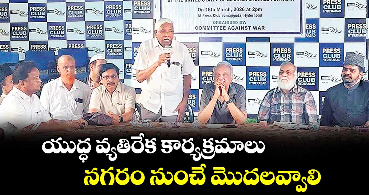 మిడిల్ ఈస్ట్ దేశాలతో హైదరాబాద్కు పూర్వం నుంచే సంబంధాలు ఉన్నాయన్నారు. దేశవ్యాప్తంగా తెలిసేలా చారిత్రాత్మక యుద్ధ వ్యతిరేక కార్యక్రమాలను నగరం నుంచే భారీ స్థాయిలో ప్రారంభించాల్సిన అవసరం ఉందన్నారు. యుద్ధ వ్యతిరేక కార్యక్రమాలపై కార్యాచరణ రూపొందించేందుకు ఈ నెల 18న నగరంలోని ముగ్దుంభవన్లో అన్ని వర్గాలు, రాజకీయ పక్షాలతో సమావేశం నిర్వహించాలని తీర్మానించారు. ఈ సమావేశంలో తెలంగాణ జేఏసీ నాయకులు శోయబ్ అలీ ఖాన్, టీజేఎస్ నేత మహ్మద్ అఫ్జల్, మాజీ ఎమ్మెల్యే గోవర్ధన్, సీపీఐ నాయకులు అన్వేష్, రవి కుమార్ తదితరులు పాల్గొన్నారు.