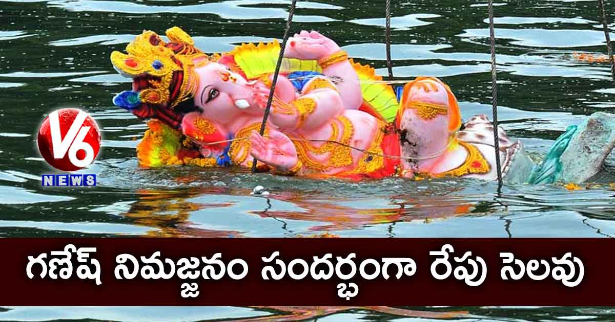 వినాయక నిమజ్జనం సందర్భంగా రేపు(గురువారం) హైదరాబాద్, సికింద్రాబాద్ జంట నగరాల్లో సెలవు ప్రకటించింది రాష్ట్ర ప్రభుత్వం. వీటితో పాటు మేడ్చల్, మల్కాజిగిరి జిల్లాలకు కూడా ఈ సెలవు వర్తింపజేస్తూ ప్రభుత్వం ఉత్తర్వులు జారీ చేసింది. రేపు సెలవు దినం బదులుగా ఈనెల 14న రెండో శనివారాన్ని పనిదినంగా ప్రకటిస్తూ ప్రభుత్వం ఉత్తర్వులు జారీ చేసింది.