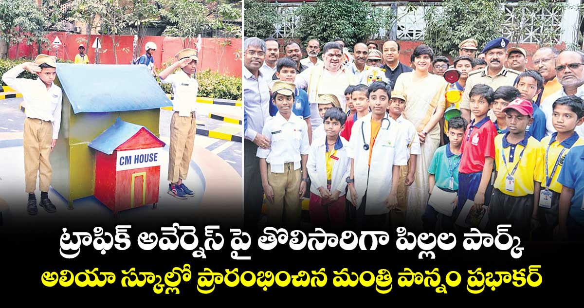 హైదరాబాద్సిటీ, వెలుగు: రోడ్డు భద్రత అనేది సమాజం మొత్తం బాధ్యత అని రవాణాశాఖ మంత్రి పొన్నం ప్రభాకర్ అన్నారు. రోడ్డు భద్రతను పాఠశాల స్థాయి నుంచే పాఠ్యాంశంగా ప్రవేశపెట్టాల్సిన అవసరం ఉందన్నారు. రోడ్ సేఫ్టీ మాసం ముగింపు సందర్భంగా నగరంలోని అలియా మోడల్ హై స్కూల్లో ట్రాఫిక్ అవగాహన పార్క్ను శనివారం ఆయన ప్రారంభించారు.
