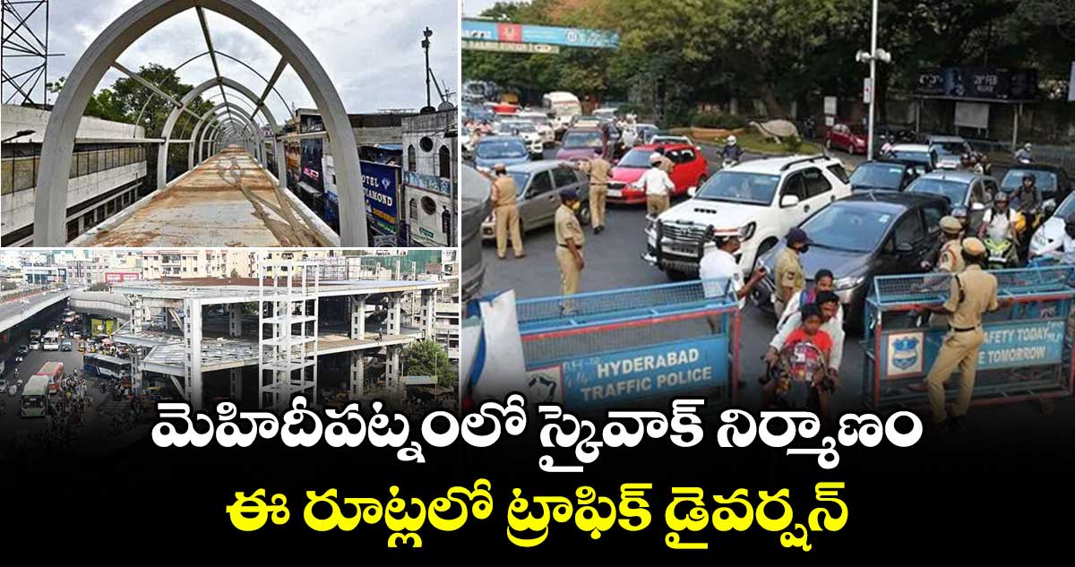 ట్రాఫిక్ నియంత్రణ, పాదచారుల సౌకర్యం కోసం హైదరాబాద్ సిటీలో స్కైవాక్ ల నిర్మాణానికి ప్రభుత్వం ప్రాధాన్యం ఇస్తోంది. ఉప్పల్ మాదిరిగానే మెహిదీపట్నంలోనూ స్కైవాక్ నిర్మిస్తున్న విషయం తెలిసిందే. నిర్మాణం పనులు వేగంగా జరుగుతున్న క్రమంలో ట్రాఫిక్ డైవర్షన్ చేస్తున్నారు. మెహిదీపట్నం రైతు బజార్, బస్టాప్ ఏరియాల్లో నిర్మిస్తున్న స్కైవాక్ కారణంగా ట్రాఫిక్ డైవర్షన్ వివరాలను వెల్లడించారు ట్రాఫిక్ పోలీసులు.