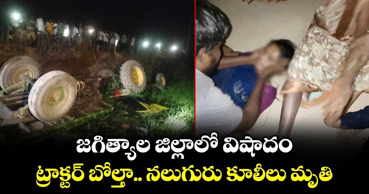 జగిత్యాల జిల్లా మల్లాపూర్ మండలం మొగిలిపేట సమీపంలో ట్రాక్టర్ బోల్తా పడి నలుగురు మృతి చెందిన ఘటన విషాదం నింపింది. కూలి పనులకు వెళ్లి తిరిగి వెళుతుండగా అదుపుతప్పి కూలీలతో వెళుతున్న ట్రాక్టర్ నీటి గుంటలో పడిపోయింది. చనిపోయిన నలుగురు మహిళలు మొగిలిపేట గ్రామానికి చెందిన వారిగా గుర్తించారు. మల్లాపూర్ మండలంలోని రత్నాపూర్లో మల్లన్న జాతర జరుగుతోంది. దీంతో.. ఈ జాతరకు వచ్చి తిరిగి వెళ్తుండగా ప్రమాదం జరిగిందని స్థానికులు భావించారు.