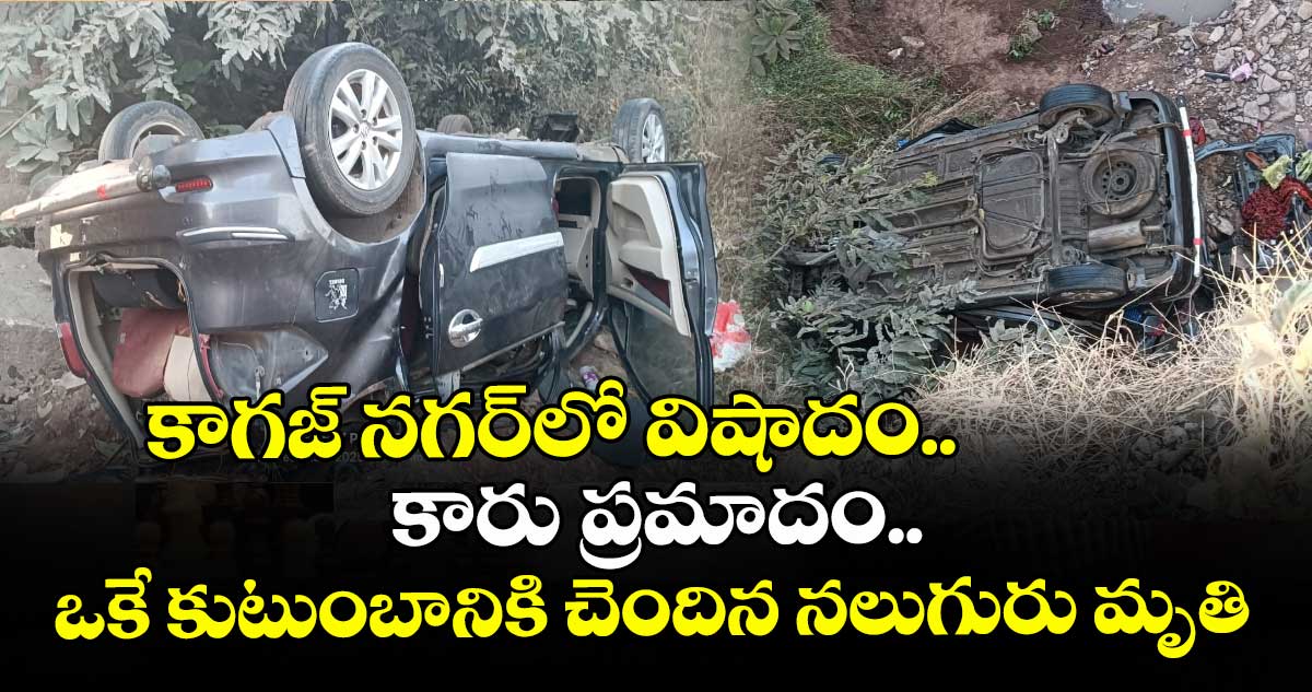 కుమ్రంభీం ఆసిఫాబాద్ : కుమ్రంభీం ఆసిఫాబాద్ జిల్లా కాగజ్ నగర్ లో విషాదం నెలకొంది. కాగజ్ నగర్ కు చెందిన ఓ కుటుంబం వైద్యం కోసం వెళ్తుండగా కారు ప్రమాదం జరిగింది. ప్రమాదంలో ఒకే కుటుంబానికి చెందిన నలుగురు ప్రాణాలు కోల్పోవడం స్థానికంగా తీవ్ర విషాదాన్ని నింపింది. వివరాల్లోకి వెళితే..