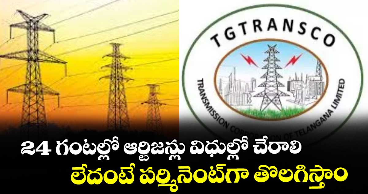 హైదరాబాద్, వెలుగు: 24 గంటల్లో విధుల్లో చేరాలని సమ్మె చేస్తున్న ఆర్టిజన్లకు ట్రాన్స్కో బుధవారం ఆదేశాలు జారీ చేసింది. లేదంటే పర్మినెంట్గా తొలగిస్తామని హెచ్చరించింది. తమ సమస్యలను పరిష్కరించాలని కోరుతూ.. ట్రాన్స్కో, జెన్కో, ఉత్తర, దక్షిణ విద్యుత్ పంపిణీ సంస్థలకు చెందిన 19 వేల మందికి పైగా ఆర్టిజన్లు ఈ నెల 9 నుంచి సమ్మె చేస్తున్నారు.