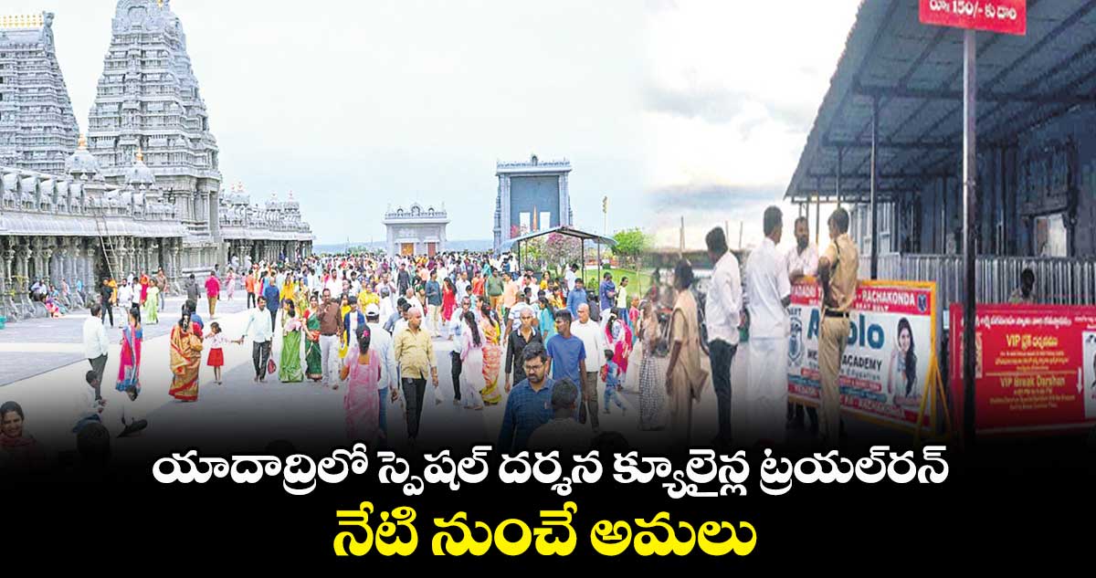 యాదగిరిగుట్ట, వెలుగు : యాదగిరిగుట్ట శ్రీలక్ష్మీనరసింహస్వామి దర్శనానికి వచ్చే భక్తుల కోసం స్పెషల్దర్శన క్యూలైన్లను సోమవారం నుంచి అధికారికంగా ప్రారంభించనున్నారు. ఇప్పటివరకు వీఐపీ టికెట్లు కొన్న భక్తులను తూర్పు రాజగోపురం నుంచి డైరెక్టుగా ఆలయంలోకి అనుమతించేవారు. వారికి ప్రత్యేక క్యూలైన్లు ఉండాలనే ఉద్దేశంతో ఇప్పటికే ఉన్న ధర్మదర్శన లైన్లను రెండుగా విభజించారు.