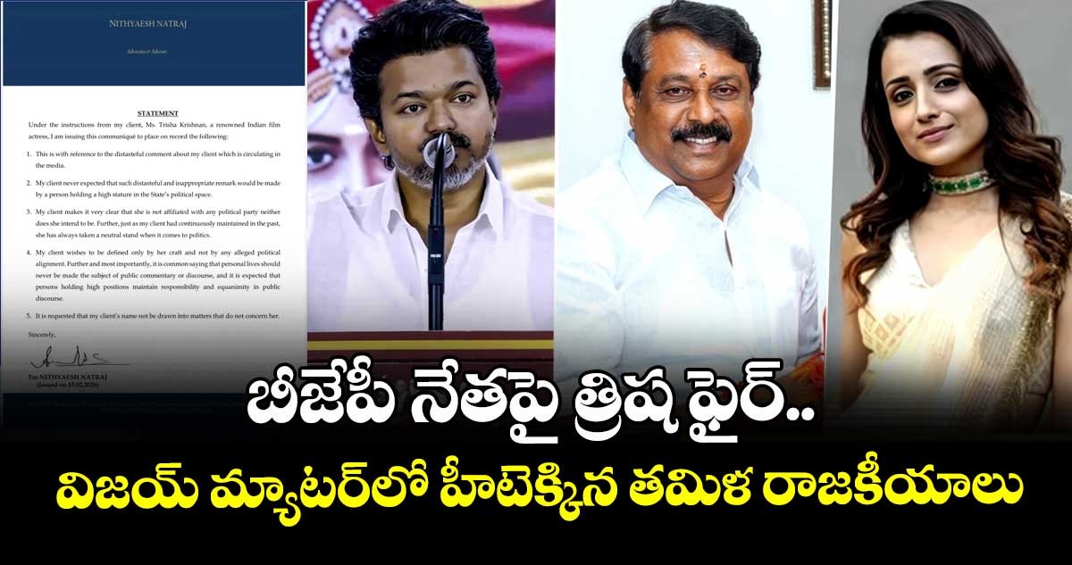 తమిళనాడు రాజకీయ వర్గాల్లో ఇటీవల చోటుచేసుకున్న వ్యాఖ్యలపై హీరోయిన్ త్రిష ఘాటుగా స్పందించారు. తమిళ్ బీజేపీ నాయకుడు నయినార్ నాగేంద్రన్ చేసిన వ్యాఖ్యలను తీవ్రంగా ఖండించిన ఆమె, తనను అనవసర రాజకీయ వివాదాల్లోకి లాగితే న్యాయపరమైన చర్యలు తప్పవని హెచ్చరించారు. లేటెస్ట్గా హీరోయిన్ త్రిష X వేదికగా నోట్ రిలీజ్ చేసి లీగల్ వార్నింగ్ ఇచ్చింది.
