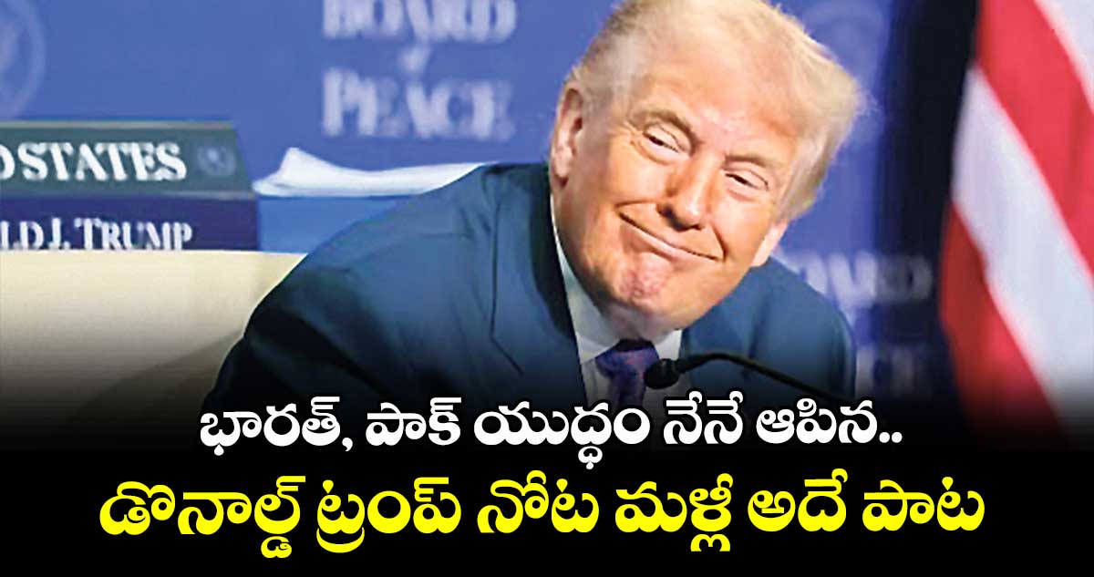వాషింగ్టన్: అమెరికా అధ్యక్షుడు డొనాల్డ్ ట్రంప్ మళ్లీ పాత పాటే అందుకున్నారు. గతేడాది భారత్, పాక్ యుద్ధాన్ని తానే ఆపానని మరోసారి గొప్పలు చెప్పుకున్నారు. వాషింగ్టన్లో జరిగిన 'బోర్డ్ ఆఫ్ పీస్' కార్యక్రమంలో ట్రంప్ మాట్లాడుతూ.." ఘర్షణలు తీవ్రస్థాయిలో జరుగుతున్న టైంలో భారత ప్రధాని నరేంద్ర మోదీకి, పాక్ ప్రధాని షెహబాజ్ షరీఫ్కు నేనే నేరుగా ఫోన్ చేశాను. యుద్ధం ఆపకపోతే 200 శాతం టారిఫ్స్ విధిస్తానని ఇరువురిని బెదిరించాను.