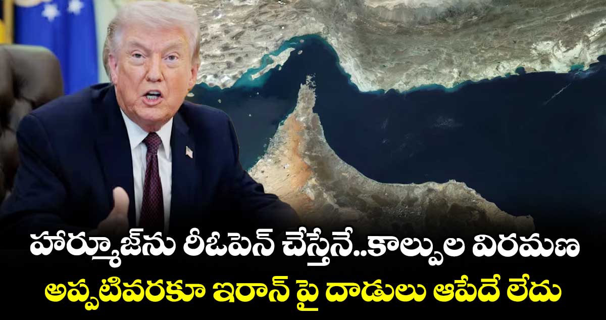 టెహ్రాన్/జెరూసలెం/వాషింగ్టన్: హార్మూజ్ జలసంధిని తిరిగి పూర్తిగా తెరిచినప్పుడే ఇరాన్పై దాడుల నిలిపివేతను పరిశీలిస్తామని అమెరికా అధ్యక్షుడు డొనాల్డ్ ట్రంప్ చెప్పారు. "హార్మూజ్ జలసంధి ఎప్పుడు స్వేచ్ఛగా ఓపెన్ అవుతుందో అప్పుడు కాల్పుల విరమణను పరిశీలిస్తాం. అప్పటివరకూ ఇరాన్పై దాడులు చేస్తూనే ఉంటాం" అని బుధవారం ఆయన స్పష్టం చేశారు. ఇరాన్ "ప్రభుత్వ కొత్త అధ్యక్షుడు" అమెరికాను యుద్ధ విరమణ కోరారని బుధవారం ఒక సోషల్ మీడియా పోస్ట్లో ట్రంప్ పేర్కొన్నారు.