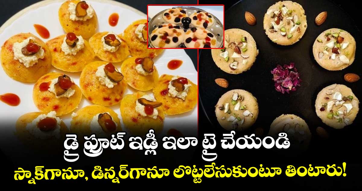 డ్రైఫ్రూట్స్ ని చిన్న ముక్కలుగా చేయాలి. తర్వాత ఇడ్లీ ప్లేట్లలో పిండి వేసి ఓ మాదిరి మంట మీద ఉడికించాలి. సగం ఉడికిన తర్వాత ఇడ్డీలపై డ్రైఫ్రూట్స్ ముక్కలు వేసి మూత పెట్టాలి. బాగా ఉడికిన ఇడ్లీలను పేట్టలోకి తీసుకొని పైన కొద్దికొద్దిగా నెయ్యి వేసి దాని మీద క్యారెట్ తురుము, కొబ్బరి తురుము, తేనె వేసి, చెర్రీస్లో గార్నిష్ చేస్తే చాలు. డ్రై ఫ్రూట్ ఇడ్లీ రెడీ.