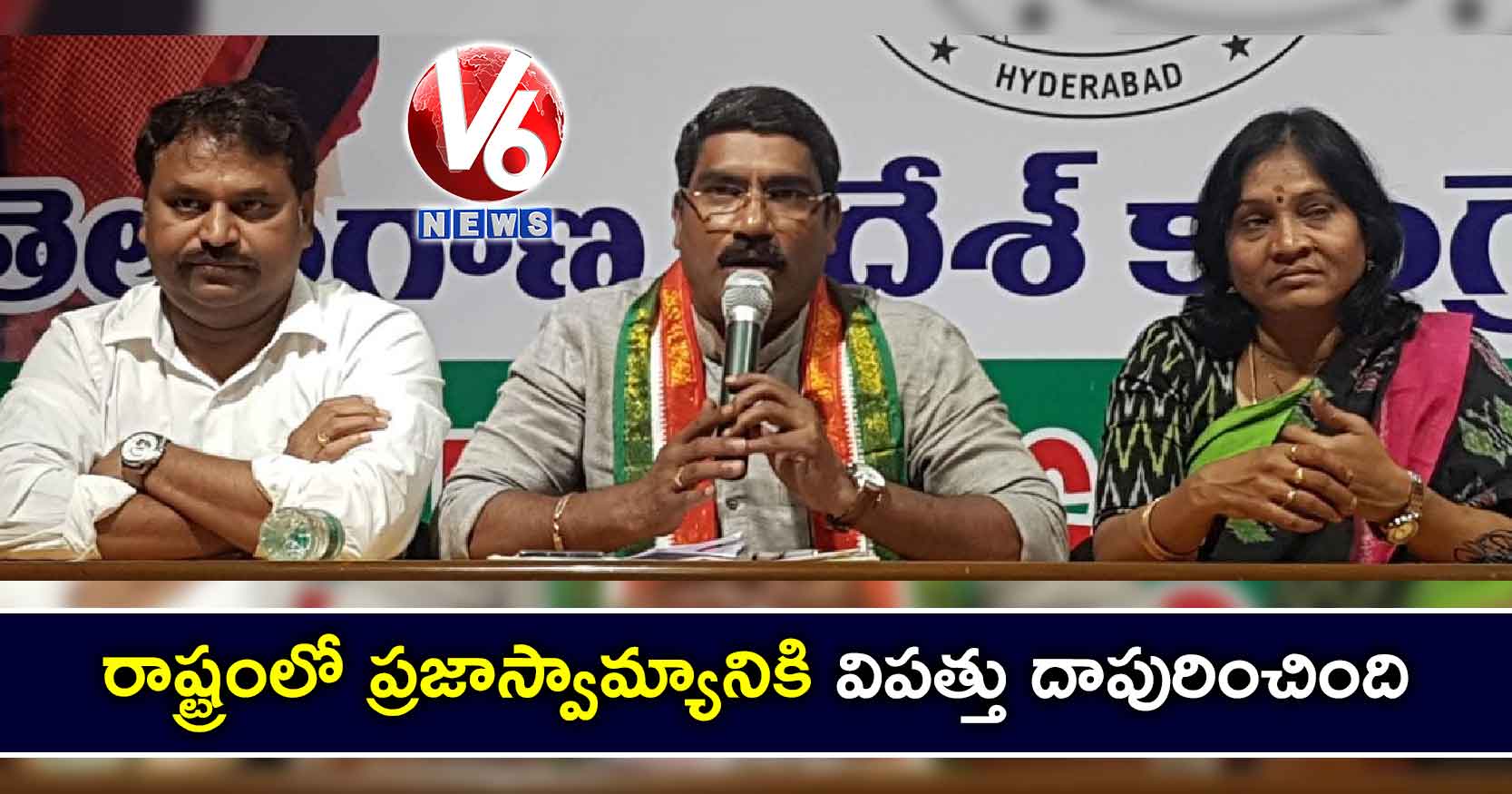 కేసీఆర్ ప్రభుత్వం ప్రజాస్వామ్య వ్యవస్థను పూర్తిగా నిర్లక్ష్యం చేసి విధానాలను తుంగలో తొక్కిందన్నారు ఏఐసీసీ కార్యదర్శి సంపత్. ప్రజలను విస్మరించి పాలకులు పాలన సాగిస్తున్నారన్నారు. శుక్రవారం గాంధీభవన్ లో కాంగ్రెస్ పార్టీ నాయకులు సంపత్, పార్టీ అధికార ప్రతినిధులు అద్దంకి దయాకర్, ఇందిరా శోభన్ మీడియాతో సమావేశమయ్యారు.