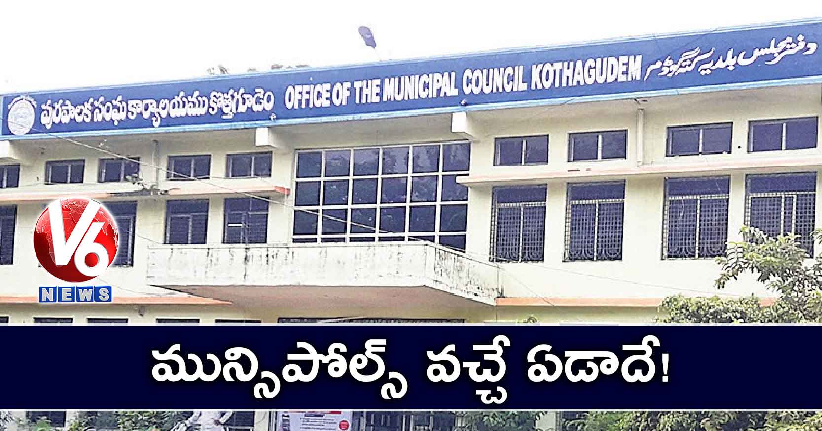 మున్సిపాల్టీల్లో వార్డుల విభజన అశాస్త్రీయంగా ఉందంటూ పలువురు హైకోర్టుకు వెళ్లడంతో 71 మున్సిపాల్టీలు, ఆరు కార్పొరేషన్లలో ఎన్నికలపై సింగిల్ జడ్జి స్టే ఇచ్చారు. న్యాయ ప్రక్రియ పూర్తవడానికి నెల రోజులకుపైగా సమయం పడుతుందని ఓ అధికారి తెలిపారు. హుజూర్నగర్ ఉపఎన్నికల్లో భారీ విజయంతో మున్సిపోల్స్కు టీఆర్ఎస్ ఆసక్తి చూపింది. ఆర్టీసీ కార్మికుల సమ్మె తీవ్రరూపం దాల్చడం, చలో ట్యాంక్బండ్ లో పోలీసుల లాఠీచార్జీలో ఎక్కువ మంది కార్మికులు గాయపడటంతో వారిపై సానుభూతి పెరిగిందని ఇంటెలిజెన్స్ వర్గాలు ప్రభుత్వాన్ని హెచ్చరించినట్టుగా తెలిసింది. ప్రైవేట్ బస్సుల్లో చార్జీలపై జనం ఆందోళనగా ఉన్నారని నివేదించినట్టుగా సమాచారం. ఇలాంటి పరిస్థితుల్లో మున్సిపల్ ఎన్నికలకు పోతే ప్రతికూల ఫలితాలు వస్తాయేమోననే వెనక్కి తగ్గినట్టు ప్రచారం జరుగుతోంది.