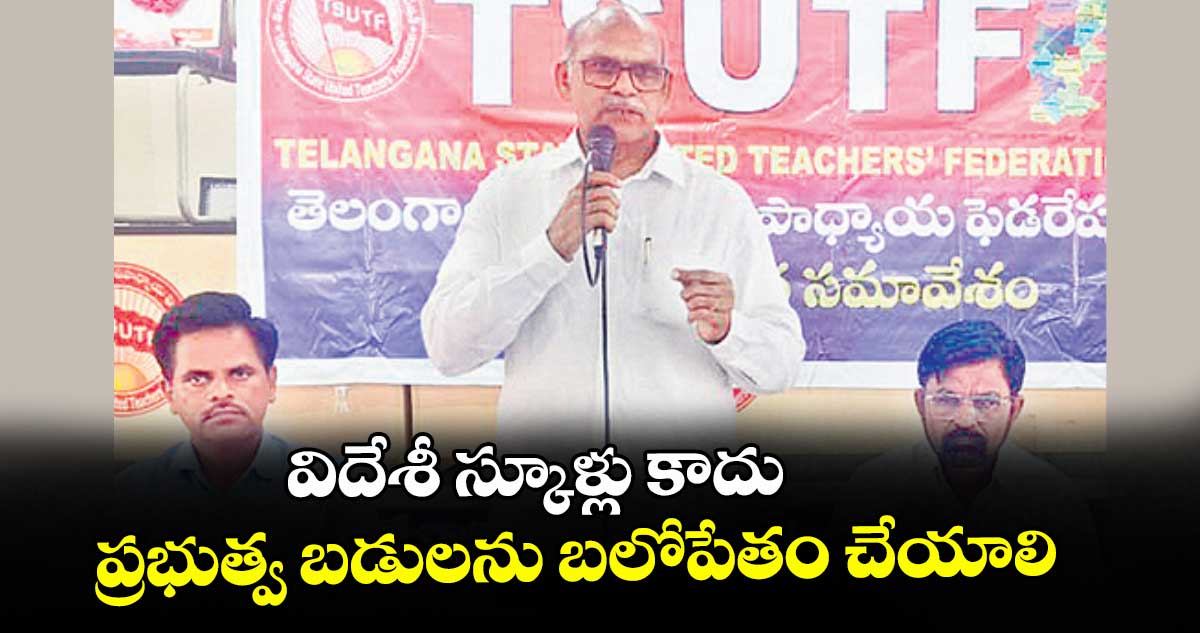 హైదరాబాద్, వెలుగు: రాష్ట్రంలో కొద్దిమంది ధనవంతుల కోసం విదేశీ విద్యాలయాలను ఆహ్వానించడం మానుకొని, సామాన్య ప్రజలందరికీ నాణ్యమైన విద్యనందించేలా ప్రభుత్వ స్కూళ్లను బలోపేతం చేయడంపై దృష్టి పెట్టాలని తెలంగాణ రాష్ట్ర ఐక్య ఉపాధ్యాయ ఫెడరేషన్(టీఎస్ యూటీఎఫ్) డిమాండ్ చేసింది. ప్రైమరీ స్కూళ్లలో వెంటనే నర్సరీ, కేజీ తరగతులు ప్రారంభించాలని కోరింది. విద్యాశాఖలో ఖాళీగా ఉన్న పర్యవేక్షణ అధికారుల పోస్టులను భర్తీ చేయాలని, జీవో 25ను సవరించి ప్రతి ప్రైమరీ స్కూల్ లో కనీసం ఇద్దరు టీచర్లు ఉండేలా చూడాలని, 50 మందికి పైగా విద్యార్థులుంటే తరగతికి ఒక టీచర్ ను నియమించాలని డిమాండ్ చేసింది.