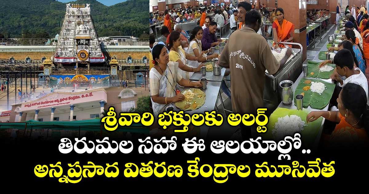 కలియుగ వైకుంఠం తిరుమల సహా టీటీడీ ఆలయాల్లో అన్నప్రసాద వితరణ కేంద్రాలు మూసివేయనున్నారు. మార్చి 3న చంద్రగ్రహణం సందర్భంగా తిరుపతి, తిరుచానూరులోని టీటీడీ ఆలయాల్లో అన్నప్రసాద వితరణ కేంద్రాలు మూసివేయనున్నట్లు తెలిపారు అధికారులు.