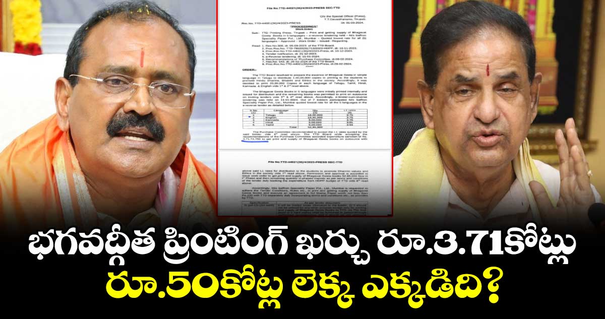 మొదటి దశలో 52లక్షల 95వేల పుస్తకాల ఖర్చు సుమారు రూ.3.71కోట్లు(రూ. 3కోట్ల 71లక్షల 73వేల 750) అయ్యింది.. రూ. 50 కోట్ల లెక్క ఎక్కడినుంచి వచ్చిందని భూమన కరుణాకర్ రెడ్డి ప్రశ్నించారు.భగవద్గీతపై కూడా తప్పుడు ప్రచారాలు చేస్తారా అని తీవ్రంగా మండిపడ్డారు.