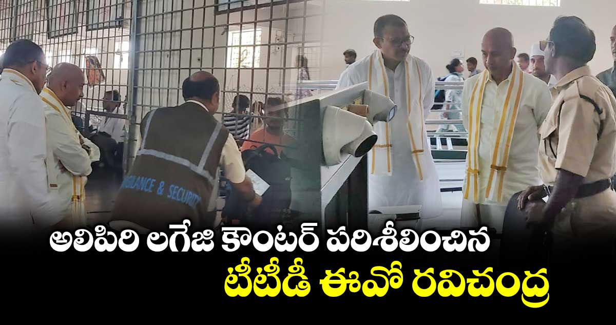 తిరుమల శ్రీ వెంకటేశ్వర స్వామి దర్శనార్థం వచ్చే భక్తులకు మరింత సౌకర్యవంతంగా సేవలు అందించేందుకు అలిపిరి దగ్గర ఏర్పాటు చేసిన లగేజి కౌంటర్ ను పరిశీలించారు టీటీడీ ఈవో రవిచంద్ర. గురువారం ( మార్చి 12 ) టీటీడీ సీవీఎస్ఓ మురళీకృష్ణతో కలిసి తనిఖీలు నిర్వహించారు ఈవో రవిచంద్ర.