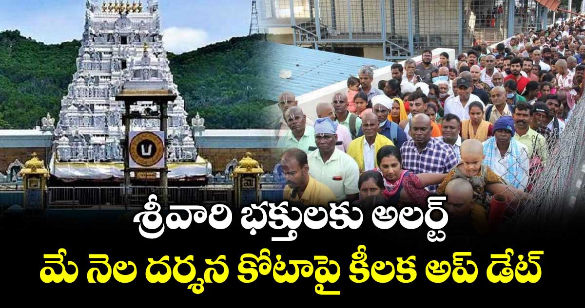 దేవదేవుడు తిరుమల వెంకటేశ్వర స్వామి మే నెల దర్శన కోటా కు సంబంధించి కీలక అప్ డేట్ విడుదల చేసింది టీటీడీ. మే నెలకు సంబంధించిన దర్శన కోటా, గదుల కోటా విడుదల వివరాలు వెల్లడించింది టీటీడీ. ఫిబ్రవరి 21 నుంచి 27వ తేదీ వరకు దర్శన కోటా విడుదల చేయనున్నట్లు తెలిపింది టీటీడీ.