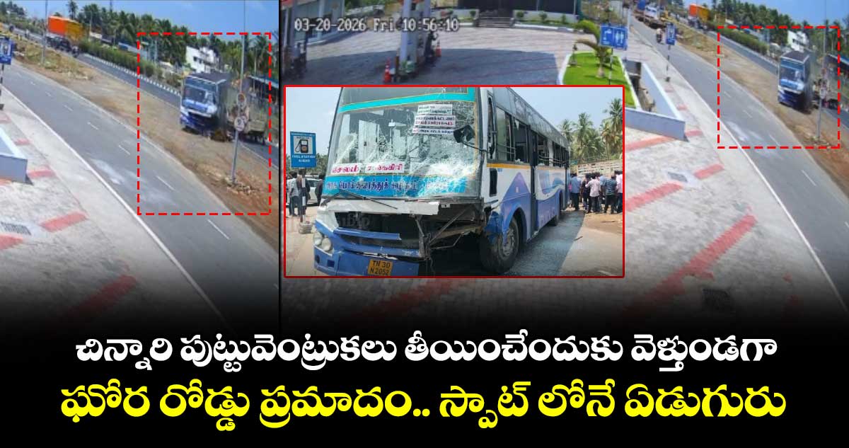 తమిళనాడులో ఘోర రోడ్డు ప్రమాదం జరిగింది. శుక్రవారం (మార్చి20) ని సేలం సమీపంలో తమిళనాడు ఆర్టీసికి చెందిన బస్సు అదుపుతప్పిన ఎదురుగా వస్తున్న వాహనాలను ఢీకొట్టింది. ఈ ప్రమాదంలో ఏడుగురు అక్కడిక్కడే చనిపోయారు. మృతుల్లో ఇద్దరు పిల్లలు, ముగ్గురు మహిళలు ఉన్నారు. మరో ఇద్దరి పరిస్థితి విషమంగా ఉంది. చిన్నారి పుట్టువెంట్రుకలు తీయించేందుకు గుడికి వెళ్తుండగా ఈ ప్రమాదం జరిగింది. ప్రమాదానికి సంబంధించిన విజువల్స్ రహదారిపై ఉన్న సీసీకెమెరాల్లో రికార్డయ్యాయి.
