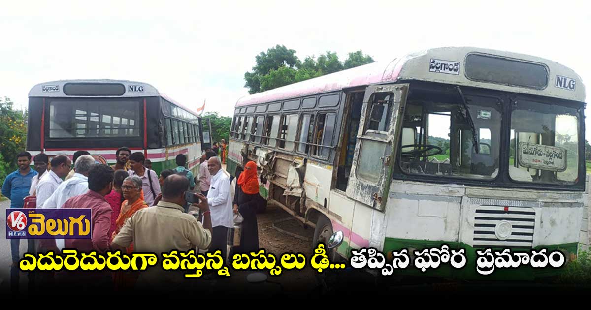 యాదాద్రి భువనగిరి జిల్లా: సంస్థాన్ నారాయణపురం మండలం కొత్తగూడెం గ్రామం వద్ద రెండు ఆర్టీసీ బస్సు లు ఎదురెదురుగా ఢీకొన్నాయి. సకాలంలో బ్రేకులు వేయడం వల్ల ప్రమాదం తీవ్రత తగ్గిపోయింది. ఎలాంటి ప్రాణనష్టం జరుగలేదని సమాచారం. అయితే బస్సులో ప్రయాణిస్తున్న మహిళలకు గాయాలయ్యాయి.