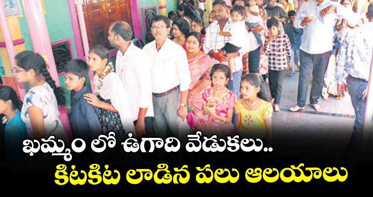 ఉగాది సందర్భంగా ఖమ్మం సిటీలోని ఆలయాలు భక్తులతో కిటకిటలాడాయి. తెల్లవారుజాము నుంచే భక్తులు భారీ సంఖ్యలో తరలివచ్చి ప్రత్యేక పూజలు చేశారు. షడ్రుచులతో కలిపిన ఉగాది పచ్చడిని సేవించారు. ఖమ్మం సిటీలోని ఖానాపురంలో ఉన్న అభయ వేంకటేశ్వర స్వామి ఆలయంలో భక్తులకు, అర్చకులు ఉగాది పంచాంగాన్ని చదివి వినిపించారు.