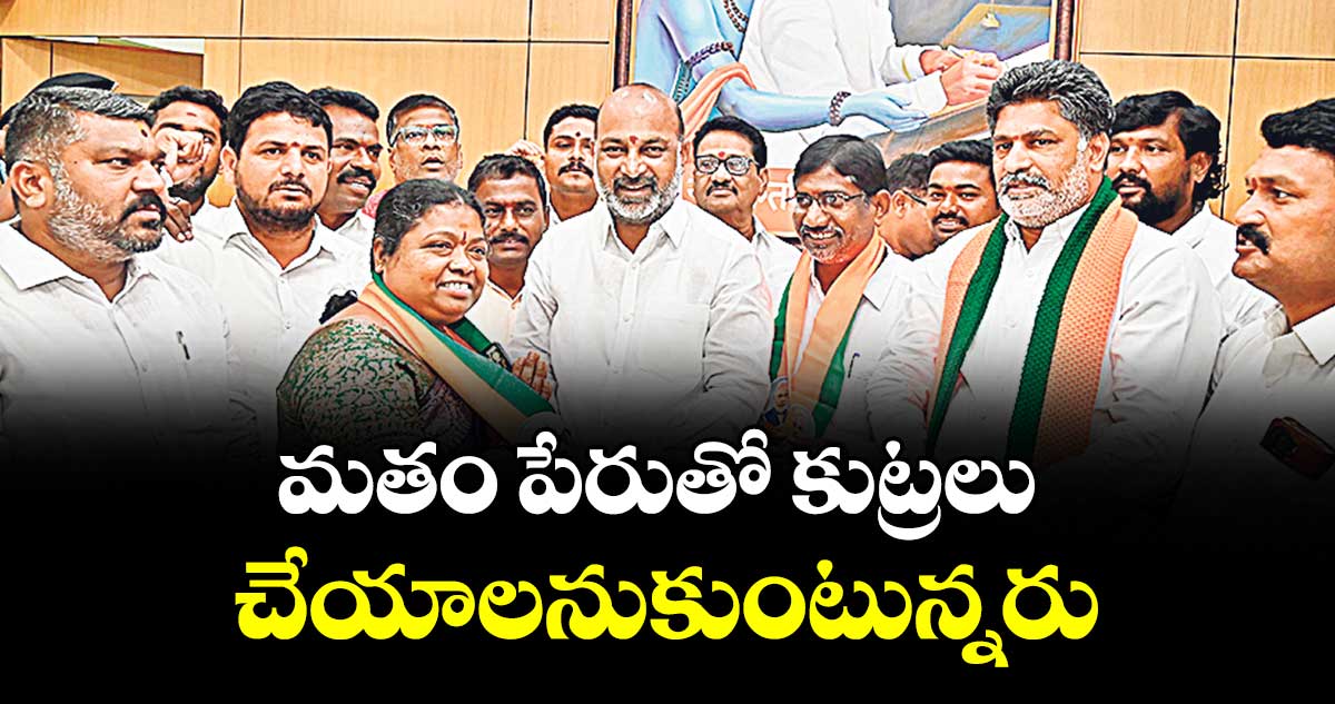 కరీంనగర్, వెలుగు: కరీంనగర్ సిటీలో మజ్లిస్లో ఓ వర్గం నేతలతో కాంగ్రెస్, మరో వర్గంతో బీఆర్ఎస్ నేతలు లోపాయికారీ ఒప్పందం కుదుర్చుకుని మతం పేరుతో కుట్రలు చేయాలనుకుంటున్నాయని కేంద్ర హోంశాఖ సహాయ మంత్రి బండి సంజయ్ కుమార్ ఆరోపించారు. తాము మాత్రం అభివృద్ధి మంత్రంతోనే ప్రజల్లోకి వెళుతున్నామని స్పష్టం చేశారు. బీఆర్ఎస్ లీడర్, మాజీ జడ్పీ చైర్పర్సన్ కనుమల్ల విజయ, ఆమె భర్త గణపతి గురువారం కరీంనగర్లో బండి సంజయ్ సమక్షంలో బీజేపీలో చేరారు. వారితోపాటు కరీంనగర్ బల్దియా, జమ్మికుంటకు చెందిన పలువురు బీఆర్ఎస్ నాయకులు బీజేపీ కండువా కప్పుకున్నారు.