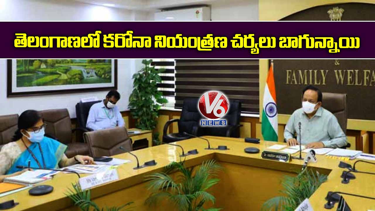 తెలంగాణ రాష్ట్రంలో కరోనా వ్యాప్తి కేసులు తగ్గుముఖం పడుతున్నాయన్నారు కేంద్ర మంత్రి హర్షవర్దన్. రాష్ట్రానికి కావాల్సిన ఆక్సిజన్, రెమ్డెసివిర్ ఇంజక్షన్లు, వ్యాక్సిన్లు, టెస్టింగ్ కిట్లు, వెంటిలేటర్లు కరోనా సంబంధిత మందుల సామగ్రి కోటాను పెంచి వెంటనే సరఫరా చేస్తామని రాష్ట్రానికి హామీ ఇచ్చారు. దీనికి సంబంధించి వివిధ రాష్ట్రాలతో ఇవాల(బుధవారం) వీడియో కాన్ఫరెన్సు నిర్వహించారు. తెలంగాణ రాష్ట్రం తరపునుంచి సీఎం కేసీఆర్ ఆదేశాలతో మంత్రి హరీష్ రావు, సీఎం సెక్రటరీ, కొవిడ్ ప్రత్యేక అధికారితో పాటు ఇతర ఉన్నాతాధిరులు వీడియో కాన్ఫరెన్స్లో పాల్గొన్నారు. ఈ సందర్భంగా రాష్ట్రంలో కరోనా పరిస్థితులు, కట్టడికి తీసుకున్న చర్యలను హరీష్ వివరించారు. రాష్ట్రానికి కావాల్సిన వ్యాక్సిన్లు, ఆక్సిజన్ తదితరాల కోటాను మరింతగా పెంచి సత్వరమే రాష్ట్రానికి సరఫరా అయ్యేలా చూడాలని కోరారు. వాటితోపాటు మరిన్ని వసతులు కల్పించాలన్నారు.