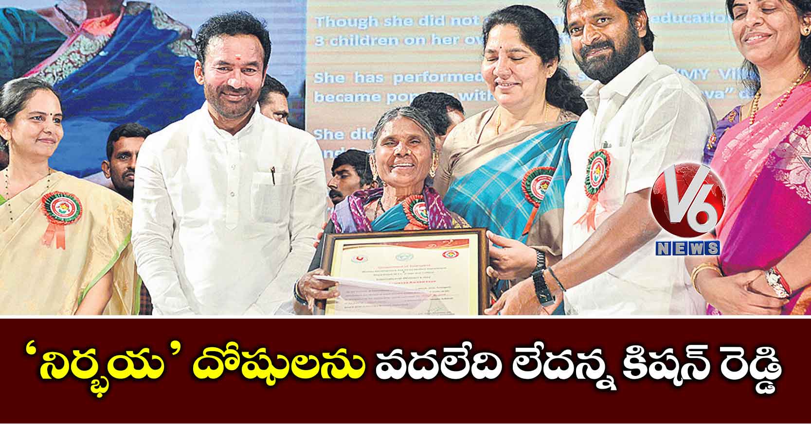తెలంగాణలో బతుకమ్మ, దసరా, బోనాల పండుగలకు దేవతల్ని పూజిస్తామని, మహిళలను గౌరవించే గొప్ప కల్చర్ మనదని కేంద్ర హోంశాఖ మంత్రి జి.కిషన్ రెడ్డి అన్నారు. మిలిటరీ పరేడ్ కు కూడా మహిళలు సారథ్యం వహిస్తున్నారని, సరిహద్దుల్లో మైనస్10 డిగ్రీల వాతావరణంలోనూ డ్యూటీ చేస్తున్నారని కొనియాడారు. చట్టాలలోని లొసుగులను పూడుస్తామని, నిర్భయ దోషులు తప్పించుకోకుండా చూస్తామన్నారు. సుప్రీంకోర్టు తన తీర్పులను తానే అమలు చేసేలా మార్పులు తెస్తామన్నారు. ఆదివారం అంతర్జాతీయ మహిళా దినోత్సవం సందర్భంగా రవీంద్రభారతిలో జరిగిన ‘మహిళా సాధకుల అవార్డుల’ కార్యక్రమానికి ఆయన చీఫ్గెస్ట్ గా హాజరయ్యారు. మహిళా సాధికారత పురస్కారాల్లో భాగంగా మహిళా, శిశు సంక్షేమ శాఖ ఆధ్వర్యంలో 20 విభాగాల్లో ఎంపికైన 30 మంది మహిళా సాధకులకు మంత్రి అవార్డులను అందజేశారు. అవార్డ్ గ్రహీతల్లో పాతబస్తీకి చెందిన ఉమెన్ పైలెట్ ఫాతిమా, మై విలేజ్ షో యూట్యూబ్ చానల్ ఫేం గంగవ్వ, మల్టిపుల్ డిజెబిలిటీ ఉన్నా, టాపర్ గా నిలిచిన స్రవంతి, సాహిత్యరంగంలో విశేష కృషి చేసిన ఐనంపూడి శ్రీలక్ష్మి, స్వయంకృషి సంస్థ వ్యవస్థాపకురాలు మంజులా కల్యాణ్, సింగర్ మంగ్లీ, తదితరులు ఉన్నారు.