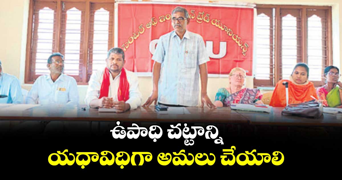 మెదక్టౌన్, వెలుగు: కాంగ్రెస్, వామపక్షాల పొత్తులో భాగంగా పోరాడి సాధించుకున్న ఉపాధి హామీ చట్టం కేంద్రంలోని బీజేపీ ప్రభుత్వం కుట్రపూరితంగా తొలగించాలని చూస్తోందని సీఐటీయూ, వ్యవసాయ కార్మిక సంఘం మెదక్ జిల్లా కార్యదర్శులు ఎ. మల్లేశం, కె. మల్లేశం అన్నారు. ఆదివారం మెదక్ పట్టణంలోని కేవల్ కిషన్ భవనంలో వారి సంఘాల ఆధ్వర్యంలో సదస్సు ఏర్పాటు చేశారు.
