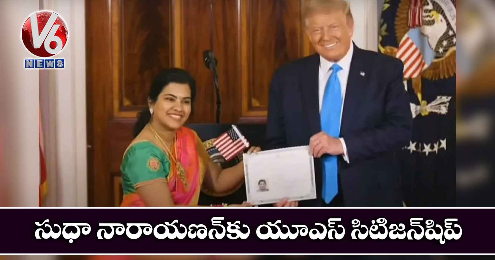 నేచురలైజేషన్ సెరెమనీ సందర్భంగా ట్రంప్ మాట్లాడుతూ.. ఐదుగురు కొత్త, అద్భుతమైన వ్యక్తులు గ్రేట్ అమెరికన్ ఫ్యామిలీలోకి సభ్యులుగా రావడంపై సంతోషం వ్యక్తంచేశారు. ‘‘ఇప్పుడు మీరు మా సహచర అమెరికన్ పౌరులు. మీకు కంగ్రాట్స్. మీరు అమెరికన్ చట్టాలను, విలువలను ఫాలో అయ్యారు. ఈ రోజు మీరు ఇక్కడ ఉండటం మాకు గర్వకారణం. ప్రపంచంలోనే అతిగొప్ప గౌరవం, హక్కు అయిన అమెరికన్ సిటిజన్షిప్ ను మీరు సంపాదించారు’’ అని ట్రంప్ మెచ్చుకున్నారు. ఇండియాలో పుట్టి, 13 ఏళ్లక్రితం అమెరికా వచ్చిన సుధా నారాయణన్ అసాధారణ సక్సెస్ సాధించారని అన్నారు. సుధా ఒక టాలెంటెడ్ సాఫ్ట్ వేర్ డెవలపర్ అని అన్నారు. సుధ, ఆమె భర్త ఇద్దరు అద్భుతమైన పిల్లలను పెంచుతున్నారని, వారికి కంగ్రాట్స్ చెప్పారు.