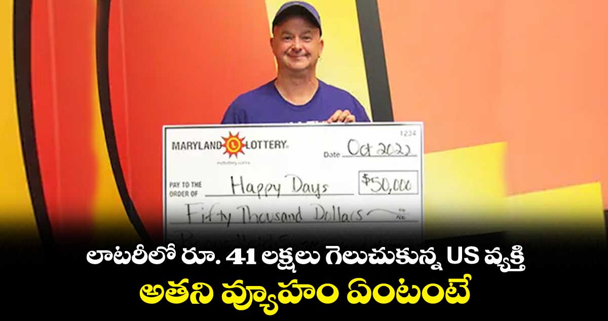 ఎవరి భవితవ్యం ఎప్పుడు ఎలా మారుతుందో చెప్పలేం. ఎవరిని ఎప్పుడు ఏ రకంగా అదృష్టం వరిస్తుందో ఎవరికీ తెలియదు. అమెరికాకు చెందిన ఒక వ్యక్తి లాటరీ డ్రాలో $50,000 (సుమారు రూ. 41 లక్షలు) గెలుచుకున్నాడు. దశాబ్దం కాలం నుంచి లాటరీ విజేత ఐదు అంకెల సెట్ను ఉపయోగించి అతను దానిని సాధించాడని చెప్పాడు. మేరీ లాండ్ కంపెనీకు చెందిన బోనస్ మ్యాచ్ 5కు డ్రాయింగ్ లాటరీ టికెట్ల ద్వారా తన అదృష్టాన్ని పరీక్షించుకున్నాడు.