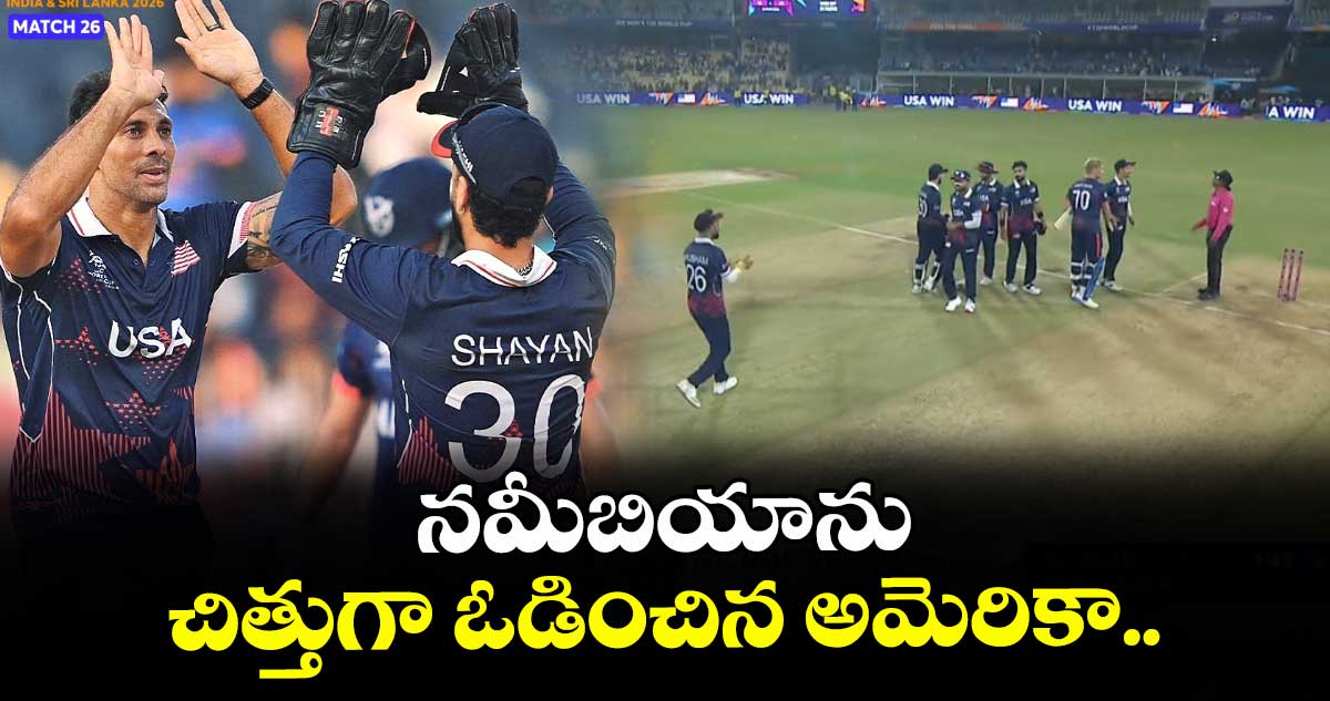 T20 World Cup: టీ20 వరల్డ్ కప్ లో భాగంగా చెన్నైలోని చిదంబరం స్టేడియంలో గ్రూప్–ఏ నుంచి జరిగిన మ్యాచ్ లో నమీబియాపై 31 పరుగుల తేడాతో అమెరికా జట్టు విజయం సాధించింది. టాస్ గెలిచి బ్యాటింగ్ తీసుకున్న యునైటెడ్ స్టేట్స్ ఆఫ్ అమెరికా నిర్ణీత 20 ఓవర్లలో 4 వికెట్ల నష్టానికి 199 పరుగులు చేసింది. కెప్టెన్ మోనాంక్ పటేల్, ఫినిషర్ సంజయ్ కృష్ణమూర్తి ఇద్దరు హాఫ్ సెంచరీలతో చెలరేగిపోయారు. ఈ ఇద్దరూ కలిసి నాలుగో వికెట్కు 87 పరుగుల కీలక భాగస్వామ్యం నెలకొల్పారు. దీంతో నమీబియా ముందు భారీ లక్ష్యం పెట్టింది.