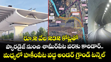ప్యారడైజ్ నుంచి శామీర్పేట వరకు కారిడార్ మధ్యలో హకీంపేట వద్ద అండర్ గ్రౌండ్ టన్నెల్ ప్రాజెక్టు ఖర్చు రూ.2,232 కోట్లు ఈ నెల 22