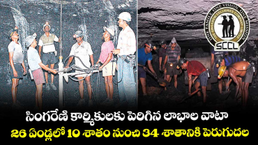 Read Moreసింగరేణి కార్మికులకు పెరిగిన లాభాల వాటా.. 26 ఏండ్లలో 10 శాతం నుంచి 34 శాతానికి పెరుగుదల