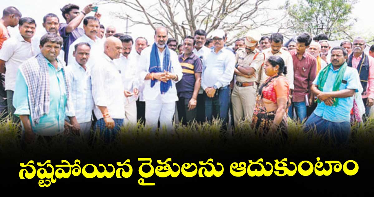 కోనరావుపేట,వెలుగు; రైతులు అధైర్య పడొద్దని, నష్టపోయిన రైతులను ప్రభుత్వం తరఫున ఆదుకుంటామని విప్, వేములవాడ ఎమ్మెల్యే ఆది శ్రీనివాస్ భరోసా ఇచ్చారు. రాజన్నసిరిసిల్ల జిల్లా కోనరావుపేట మండలం మరిమడ్లలో కురిసిన రాళ్లవానకు నష్టపోయిన పంట పొలాలను అడిషనల్ కలెక్టర్ నగేశ్తో కలిసి ఆదివారం పరిశీలించారు. ఈ సందర్భంగా ఆయన మాట్లాడుతూ రైతులు చేతికొచ్చిన పంట నష్టపోవడం బాధాకరమని, నష్టం అంచనాలను ప్రభుత్వానికి నివేదించి పరిహారం అందించేలా చర్యలు తీసుకుంటామన్నారు.