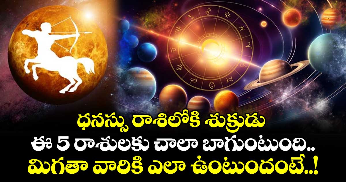 జ్యోతిష్యం ప్రకారం నవగ్రహాల్లో శుక్రు గ్రహానికి చాలా విశిష్టత ఉంది. ఆర్ధిక సమస్యలు ఉన్నాయంటే వారి జాతకంలో శుక్ర బలం వీక్ గా ఉందని పండితులు చెబుతున్నారు. ఐశ్యర్యం ... సంతోషం విషయంలో కీలక పాత్ర పోషించే శుక్రుడు 2025 డిసెంబర్ 20 వ తేది .. ఉదయం 7.50 గంటలకు ధనస్సు రాశిలో ప్రవేశించనున్నాడు. దీనివలన ఐదు రాశుల( మేషం, సింహ, తుల, ధనస్సు, కుంభ) వారికి చాలా బాగుంటుందని పండితులు చెబుతున్నారు. మిగతా రాశుల వారికి ఎలా ఉంటుందో ఈ స్టోరీలో తెలుసుకుందాం. .