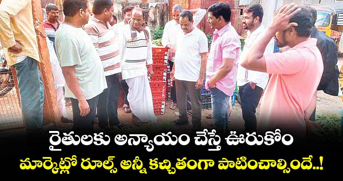నిబంధనలు పాటించని వారి లైసెన్స్లను క్యాన్సిల్ చేస్తామని హెచ్చరించారు. రైతులు నష్టపోకుండా చూస్తామని, మార్కెట్లో త్వరలోనే మరిన్ని సౌకర్యాలు కల్పిస్తామని చైర్మన్ ఈ సందర్భంగా హామీ ఇచ్చారు. ఏజెంట్ల అసోసియేషన్ ప్రెసిడెంట్ కిష్టారెడ్డి, మార్కెట్ కమిటీ ఆఫీసర్లు, సిబ్బంది పాల్గొన్నారు.