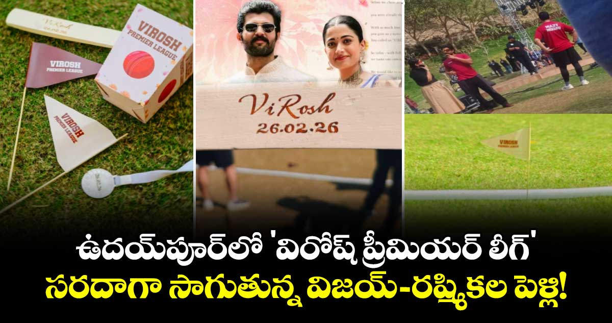 సాధారణంగా సెలబ్రిటీల పెళ్లిళ్లంటే హంగూ ఆర్భాటాలు కనిపిస్తాయి, కానీ విజయ్-రష్మికలు మాత్రం తమ పెళ్లిని చాలా సరదాగా, ప్రైవేట్గా ప్లాన్ చేసుకున్నారు. మంగళవారం (ఫిబ్రవరి 24) నాడు వీరు పంచుకున్న ఫోటోలు ఇప్పుడు నెట్టింట వైరల్ అవుతున్నాయి. ముఖ్యంగా ‘Virosh Premier League’ (VPL) పేరుతో నిర్వహించిన క్రికెట్ మ్యాచ్ అందరి దృష్టిని ఆకర్షించింది. రష్మిక షేర్ చేసిన ఫోటోలో క్రికెట్ గ్రౌండ్ మార్కింగ్ కనిపిస్తుండగా, విజయ్ అదే పేరుతో ఉన్న 'పాప్కార్న్ బకెట్' ఫోటోను షేర్ చేసి అభిమానుల్లో ఉత్సాహాన్ని నింపారు. స్నేహితులు, కుటుంబ సభ్యులతో కలిసి ఆడిన 'పూల్ వాలీబాల్' మ్యాచ్ కూడా ఈ వేడుకల్లో ప్రధాన ఆకర్షణగా నిలిచింది.