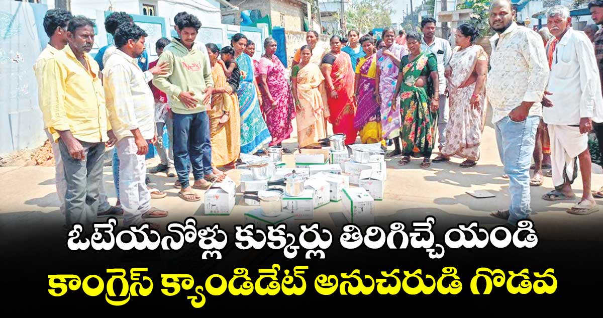 అశ్వారావుపేట, వెలుగు : తమ వద్ద కుక్కర్లు తీసుకొని తమకు ఓటు వేయలేదని, తాము ఇచ్చిన కుక్కర్లు తిరిగి ఇచ్చేయాలని ఓ కౌన్సిలర్ క్యాండిడేట్ అనుచరుడు కాలనీవాసులతో గొడవకు దిగాడు. దీంతో కాలనీవాసులు కుక్కర్లను రోడ్డుపై వేసి నిరసన తెలిపారు. వివరాల్లోకి వెళ్తే... భద్రాద్రి జిల్లా అశ్వారావుపేట పట్టణంలోని ఏఎస్ఆర్ నగర్ కౌన్సిలర్ క్యాండిడేట్గా కాంగ్రెస్ తరఫున మిండా హరిబాబు పోటీచేశారు.