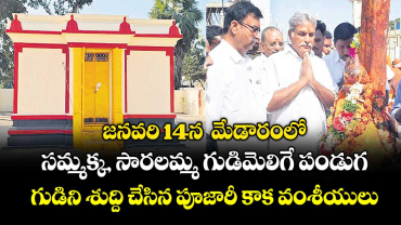 జనవరి 14న మేడారంలో సమ్మక్క, సారలమ్మ గుడిమెలిగే పండుగ.. గుడిని శుద్ది చేసిన పూజారీ కాక వంశీయులు