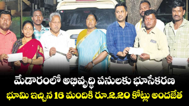 Read Moreమేడారంలో అభివృద్ధి పనులకు భూసేకరణ..భూమి ఇచ్చిన 16 మందికి రూ.2.20 కోట్లు అందజేత
