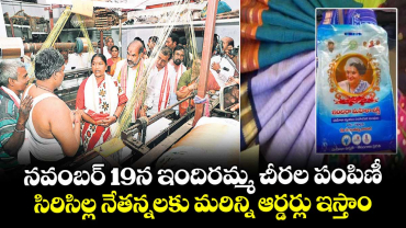 Read Moreనవంబర్ 19న ఇందిరమ్మ చీరల పంపిణీ.. సిరిసిల్ల నేతన్నలకు మరిన్ని ఆర్డర్లు ఇస్తాం : మంత్రి సీతక్క