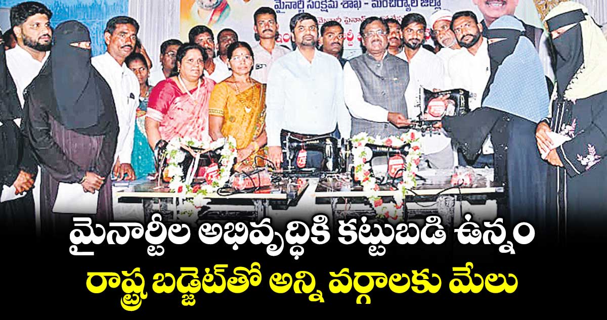 చెన్నూరు పట్టణంలోని మైనార్టీ షాదీఖానాలో జిల్లా మైనార్టీ సంక్షేమ శాఖ ఆధ్వర్యంలో ఏర్పాటు చేసిన ఇందిరమ్మ మైనార్టీ మహిళా శక్తి పథకం కింద మంజూరైన 365 కుట్టు మెషీన్లను ముస్లిం మహిళలకు కలెక్టర్ కుమార్ దీపక్, మైనార్టీ శాఖ ఆఫీసర్ రాజేశ్వరి, డీసీసీ ప్రెసిడెంట్ రఘునాథ్ రెడ్డితో కలిసి మంత్రి వివేక్ వెంకటస్వామి పంపిణీ చేశారు. ఈ సందర్భంగా మంత్రి మాట్లాడుతూ.. నియోజకవర్గంలో ఈద్గా, దర్గాల్లో మౌలిక వసతులు కల్పించేందుకు కృషి చేస్తున్నట్టు చెప్పారు.