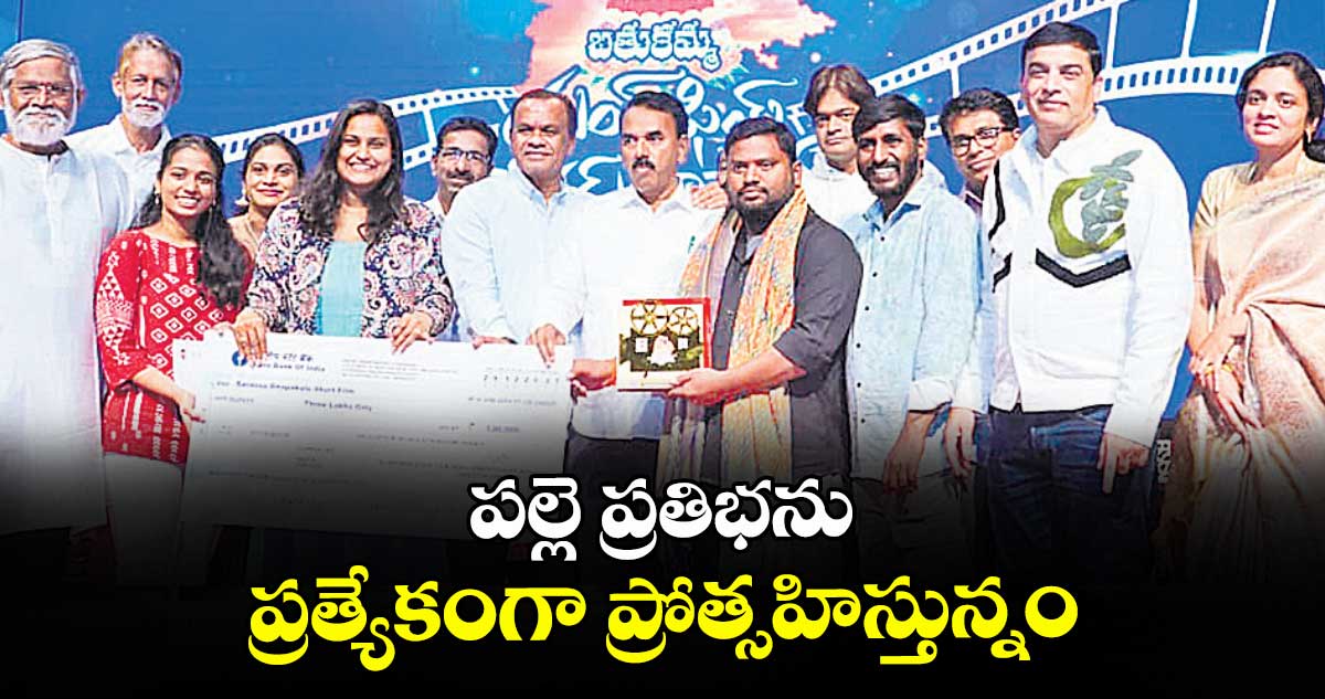 ఈ సందర్భంగా మంత్రి కోమటిరెడ్డి వెంకటరెడ్డి మాట్లాడుతూ.." దేశంలో ఎక్కడా లేని విధంగా బతుకమ్మ యంగ్ ఫిల్మ్ మేకర్స్ ఛాలెంజ్ పేరుతో అవార్డులు ఇస్తున్నాం. ప్రభుత్వ సంక్షేమ పథకాలు ప్రతి గడపకూ ఎలా చేరుతున్నాయో చెప్పే బాధ్యతను యువ ఫిల్మ్ మేకర్ల చేతుల్లో పెట్టాం.