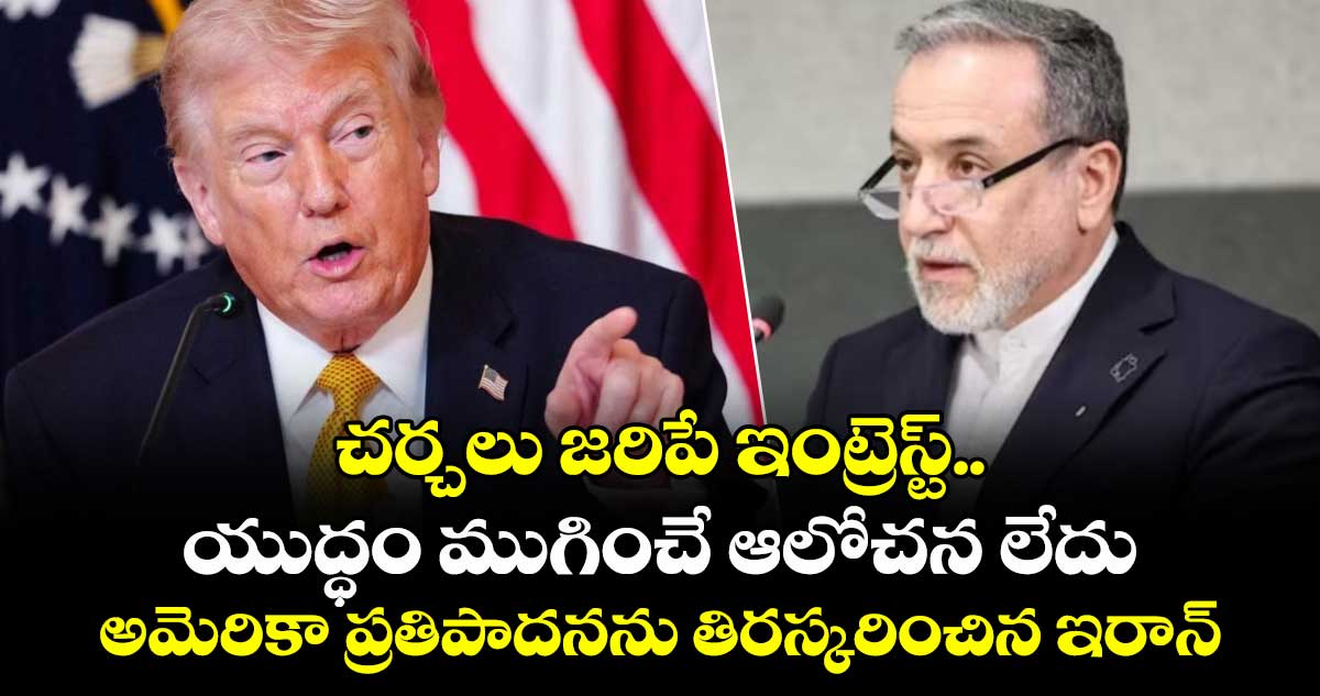 టెహ్రాన్: యుద్ధం ముగించేందుకు అమెరికా ప్రతిపాదించిన శాంతి ప్రణాళికను మరో ఆలోచన లేకుండా ఇరాన్ తిరస్కరించింది. అమెరికాతో చర్చలు జరిపే ఇంట్రెస్ట్.. యుద్ధం ముగించే ఆలోచన మాకు లేదని ఇరాన్ స్పష్టం చేసింది. అమెరికా ప్రతిపాదనను టెహ్రాన్ సమీక్షిస్తోందని తెలిపారు. ఈ మేరకు ఇరాన్ ప్రభుత్వ టీవీకి ఇచ్చిన ఇంటర్వ్యూలో ఆ దేశ విదేశాంగ మంత్రి అబ్బాస్ అరాఘ్చి మాట్లాడుతూ.. యుద్ధాన్ని తాత్కాలికంగా నిలిపివేయాలన్న అమెరికా శాంతి ప్రణాళికను తోసిపుచ్చారు.