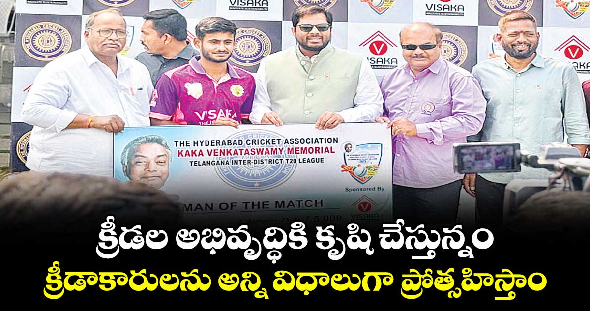 ఎంపీ వంశీకృష్ణతో కలిసి విజేతలకు బహుమతులు అందజేశారు. మెదక్ జిల్లా క్రికెట్ అసోసియేషన్ కార్యదర్శి రాజేందర్రెడ్డి, మహబూబ్ నగర్ కార్యదర్శి రాజశేఖర్, కరీంనగర్ అసోసియేషన్ అధ్యక్షుడు ఆగంరావు, హెచ్సీఏ ఇన్చార్జ్ భార్గవ్, తెలంగాణ జిల్లా క్రికెట్ అసోసియేషన్ కార్యదర్శులు, జిల్లా అసోషియేషన్ సభ్యులు శ్రీనాథ్ రెడ్డి, కోచ్లు కలీం, తౌహీద్, ఇనాం, అనిల్ తదితరులు పాల్గొన్నారు.