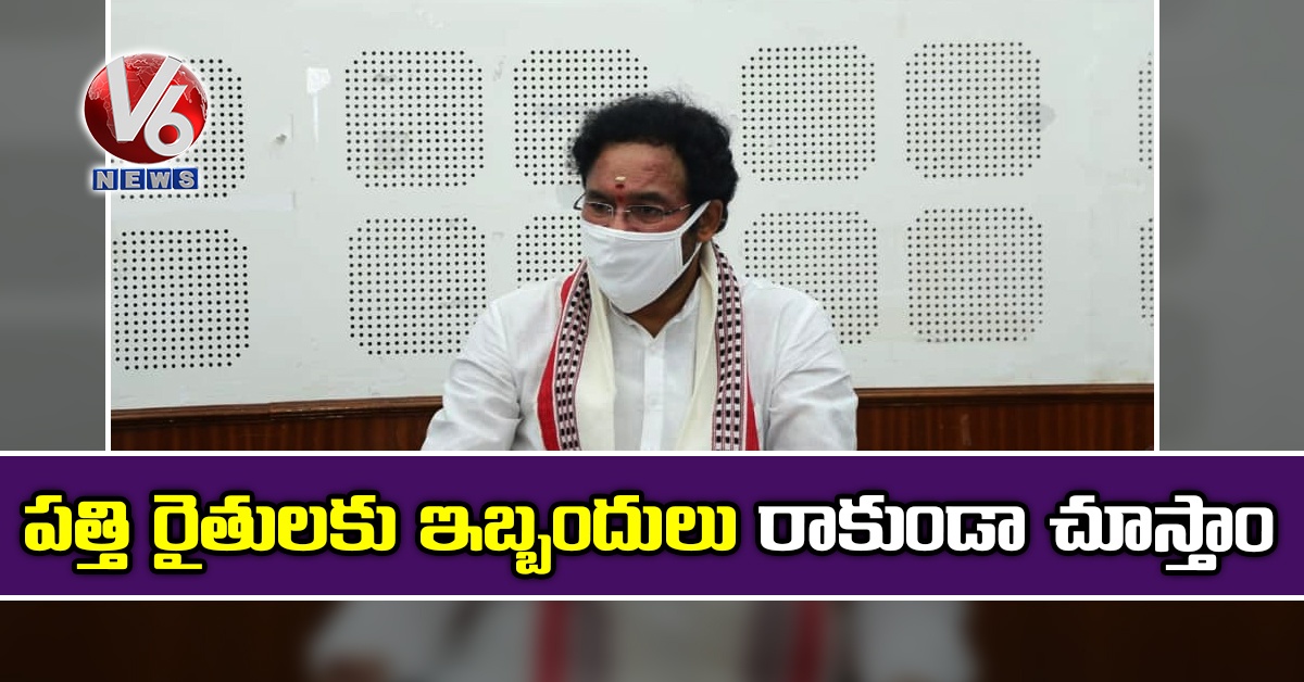 హైదరాబాద్: ఈ సీజన్ లో పత్తి రైతులకు ఇబ్బందులు రాకుండా చూస్తామన్నారు కేంద్ర హోంశాఖ సహాయమంత్రి కిషన్ రెడ్డి. చివరి బస్తా వరకు పత్తి కొనుగోలు చేస్తామన్నారు. హైదరాబాద్ లో బ్యాంకర్లతో సమావేశమైన తర్వాత ఆయన మీడియాతో మాట్లాడారు. అలాగే.. ప్రధానమంత్రి ఆవాస్ యోజన పథకంపైనా రివ్యూ చేసినట్టు కిషన్ రెడ్డి చెప్పారు.