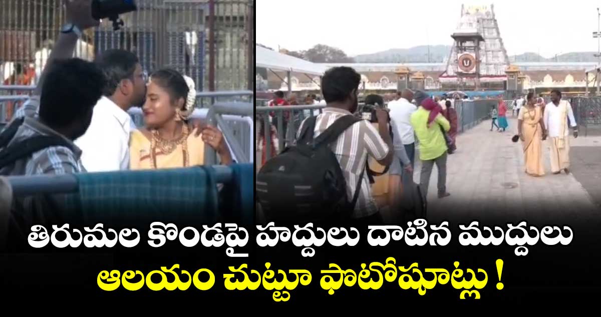 తిరుమల: కలియుగ ప్రత్యక్ష దైవం తిరుమల వెంకటేశ్వర స్వామి ఆలయ ప్రాంగణంలో అపచారం జరిగింది. తిరుమలలో ఒక జంట వెడ్డింగ్ షూట్ కలకలం రేపింది. శ్రీవారి ఆలయం ముందు కొత్త దంపతుల ముద్దులు హద్దులు దాటాయి. ఈ జంట వివరాలు తెలియలేదు గానీ.. తిరుమలలో క్యూ లైన్ల దగ్గర సాంప్రదాయ వస్త్రాల్లో అమ్మాయి నుదుటిన పెళ్లి కొడుకు ముద్దు పెడుతుండగా ఫొటోగ్రాఫర్ రికార్డ్ చేస్తున్న దృశ్యాలు సోషల్ మీడియాలో వైరల్ కావడంతో భక్తులు ఈ ఘటనపై మండిపడ్డారు.