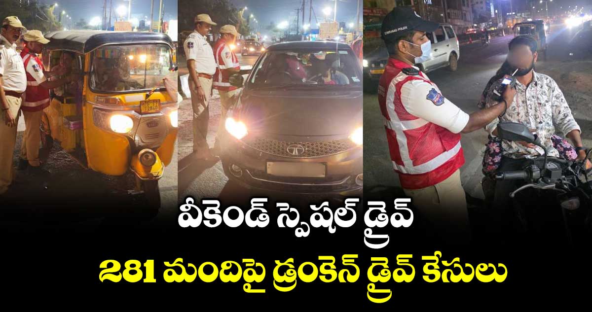 హైదరాబాద్ సిటీ, వెలుగు: సైబరాబాద్ పోలీస్ కమిషనరేట్ పరిధిలో నిర్వహించిన వీకెండ్ స్పెషల్ డ్రంకెన్ డ్రైవ్ తనిఖీల్లో 281 మందిపై కేసులు నమోదు చేసినట్లు ట్రాఫిక్ డీసీపీ రంజన్ రతన్ కుమార్ తెలిపారు. ఈ తనిఖీల్లో 224 బైక్లు, 8 ఆటోలు, 7 భారీ వాహనాలతో పాటు ఇతర వాహనాలను స్వాధీనం చేసుకున్నామని, పట్టుబడిన వారందరినీ కోర్టులో హాజరుపరచనున్నట్లు ఆయన పేర్కొన్నారు.