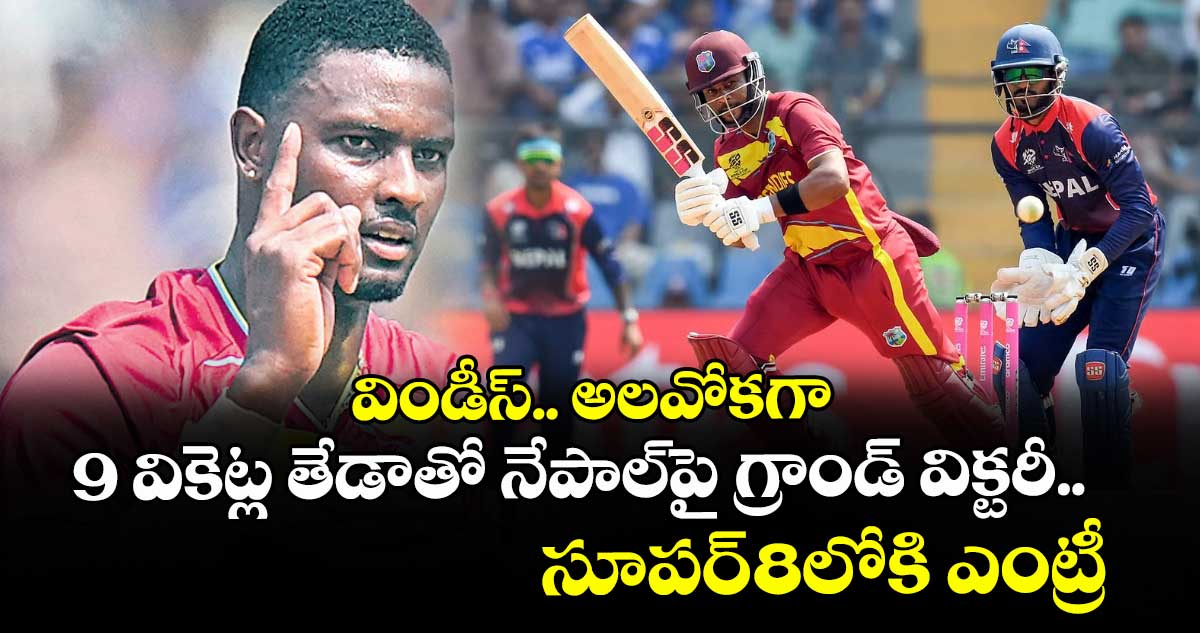 ముంబై: ఆల్రౌండ్ షోతో చెలరేగిన వెస్టిండీస్.. టీ20 వరల్డ్ కప్లో సూపర్–8 బెర్త్ సొంతం చేసుకుంది. ఛేజింగ్లో కెప్టెన్ షై హోప్ (44 బాల్స్లో 5 ఫోర్లు, 3 సిక్స్లతో 61 నాటౌట్), షిమ్రన్ హెట్మయర్ (32 బాల్స్లో 4 ఫోర్లు, 2 సిక్స్లతో 46 నాటౌట్) దంచికొట్టడంతో.. ఆదివారం జరిగిన గ్రూప్–సి లీగ్ మ్యాచ్లో విండీస్ 9 వికెట్ల తేడాతో నేపాల్పై గెలిచింది. టాస్ ఓడిన నేపాల్ 20 ఓవర్లలో 133/8 స్కోరుకే పరిమితమైంది. దీపేంద్ర సింగ్ ఐరి (47 బాల్స్లో 3 ఫోర్లు, 3 సిక్స్లతో 58) హాఫ్ సెంచరీతో ఆకట్టుకున్నాడు. తర్వాత విండీస్ 15.2 ఓవర్లలోనే 134/1 స్కోరు చేసి నెగ్గింది. 4 వికెట్లకు తీసిన హోల్డర్కు ‘ప్లేయర్ ఆఫ్ ద మ్యాచ్’ అవార్డు లభించింది. ఆడిన మూడు మ్యాచ్ల్లో ఓడిన నేపాల్... మెగా టోర్నీ నుంచి ఔటైంది.