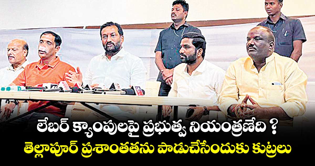 తెల్లాపూర్ లోని లేబర్క్యాంపులకు ఎక్కడినుంచి వస్తున్నారో తెలియని పరిస్థితి ఉందని, రోహింగ్యాలు కూడా మైగ్రేట్అయ్యే చాన్స్ ఉందని పీసీబీ, లేబర్ ఆఫీసర్, హెచ్ఎండీఏ, జీహెచ్ఎంసీ అధికారులు ఎంక్వైరీ చేయాలని ఆయన డిమాండ్ చేశారు. కన్స్ర్టక్షన్ పేరుతో డిస్ర్టక్షన్ చేస్తున్న నిర్మాణ సంస్థలపై చర్యలు తీసుకోవాలన్నారు.